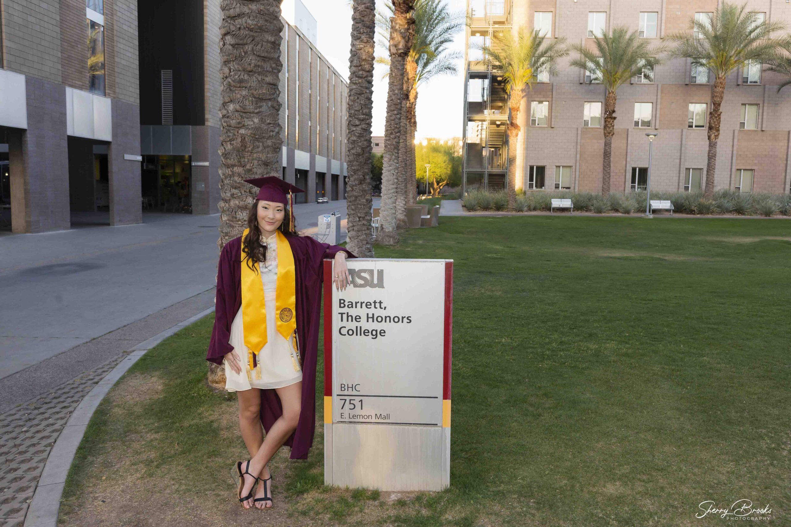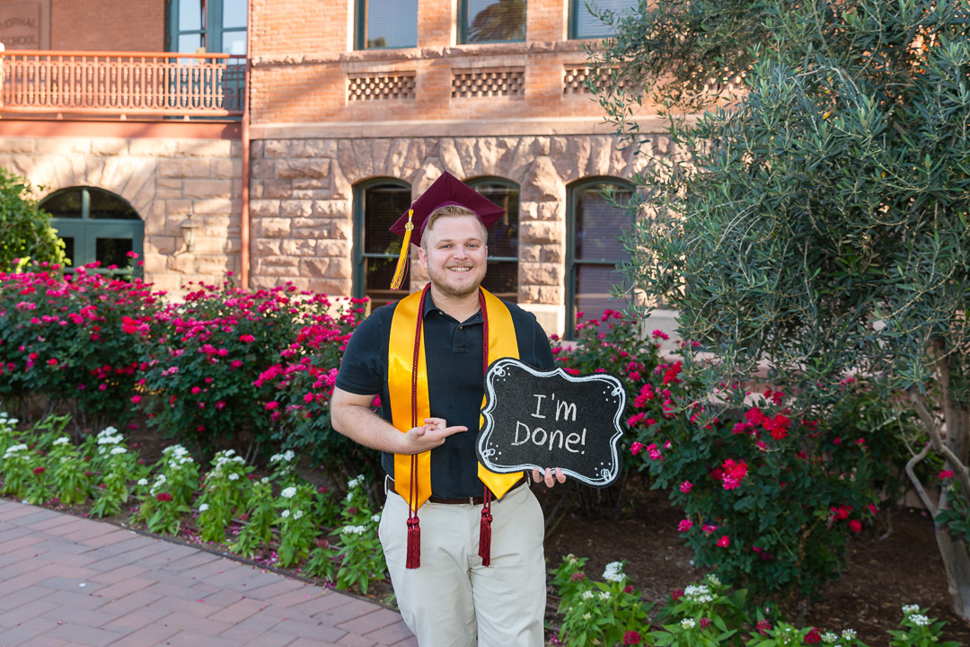 If you are graduating from ASU, then you have probably spent a significant amount of time on select areas of campus. Whether you took classes in the W.P. Carey business buildings, spent time in the labs in the Life Sciences buildings or studied for Human Event at Barrett, the Honors College – those spots on campus are a part of your Sun Devil journey. Why not capture your ASU grad photos at the locations that became such an integral piece of your story.