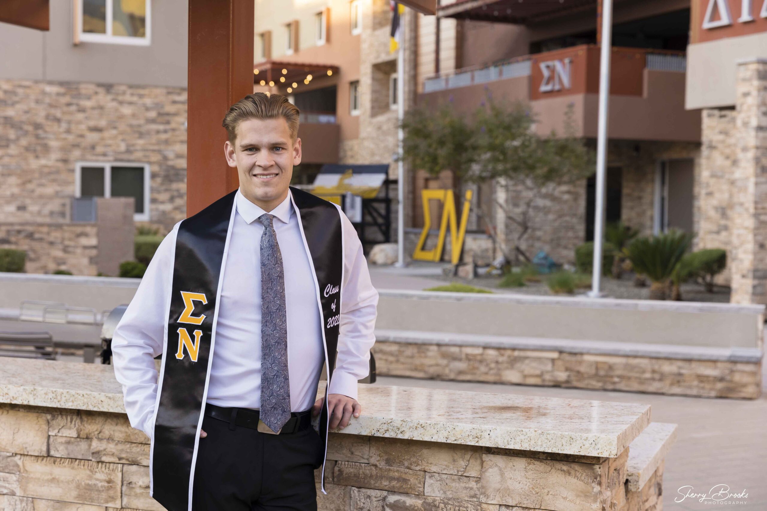 Tucked on the east side of the ASU Tempe campus is a hidden gem worth considering — the Greek Leadership Village. If Greek life was part of your Sun Devil journey, this vibrant community space offers unique visual opportunities to elevate your grad photos. Photos at the Greek Life Village can add personality to your ASU grad photos. When choosing this location, make sure that you bring your student ID to obtain access to the village.
