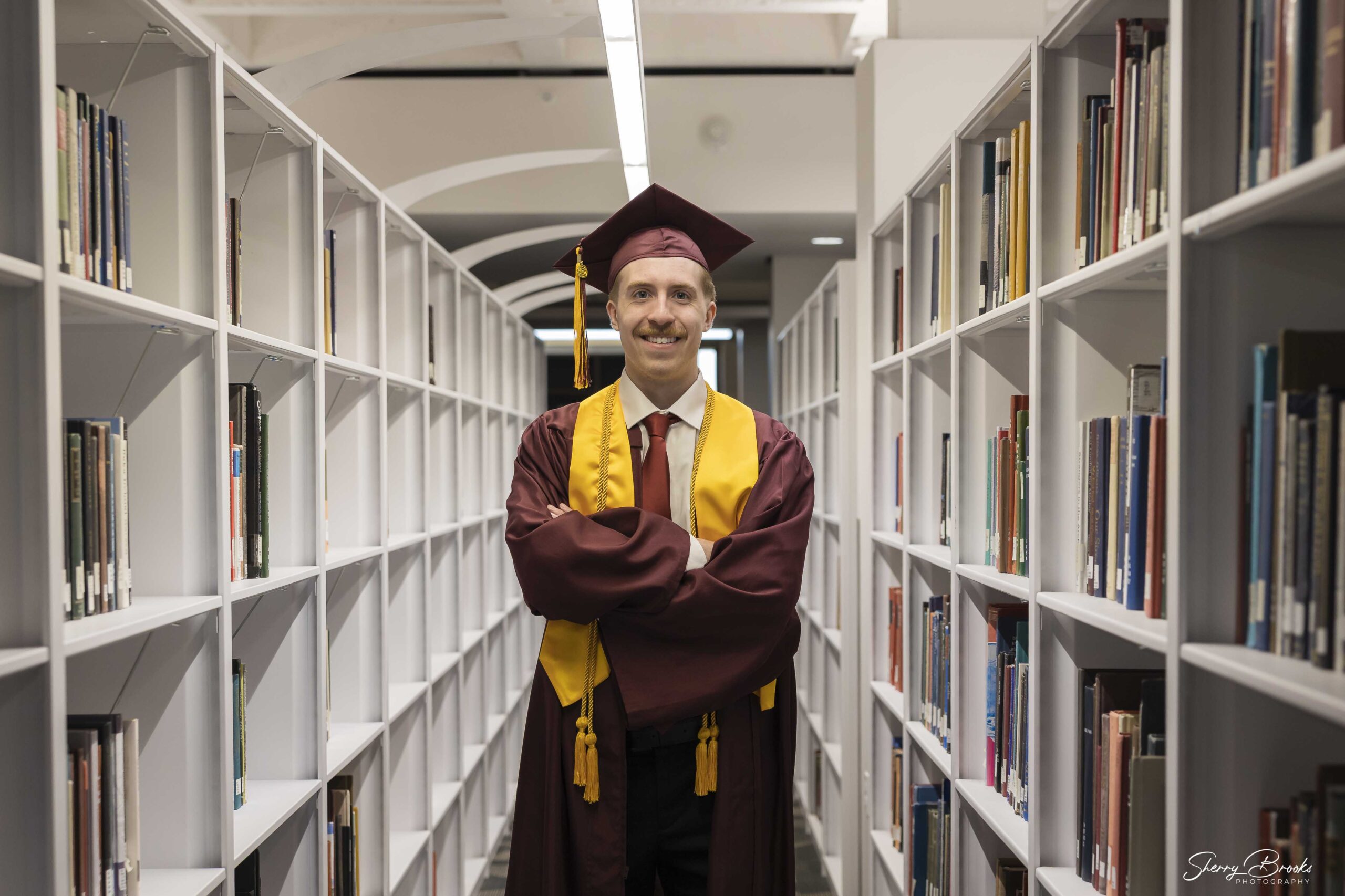 One of my favorite spots for grad photos is inside the many libraries on the ASU Tempe campus. The rows of books and soft lighting are a perfect backdrop for photos that celebrate all that you have learned in pursuit of your degree. It’s an especially great option for grads who spent countless hours studying there—making your photos not just beautiful, but deeply personal and reflective of your academic journey. If you are interested in library images, make sure to bring your ASU ID with you so that we can access the library of your choice.