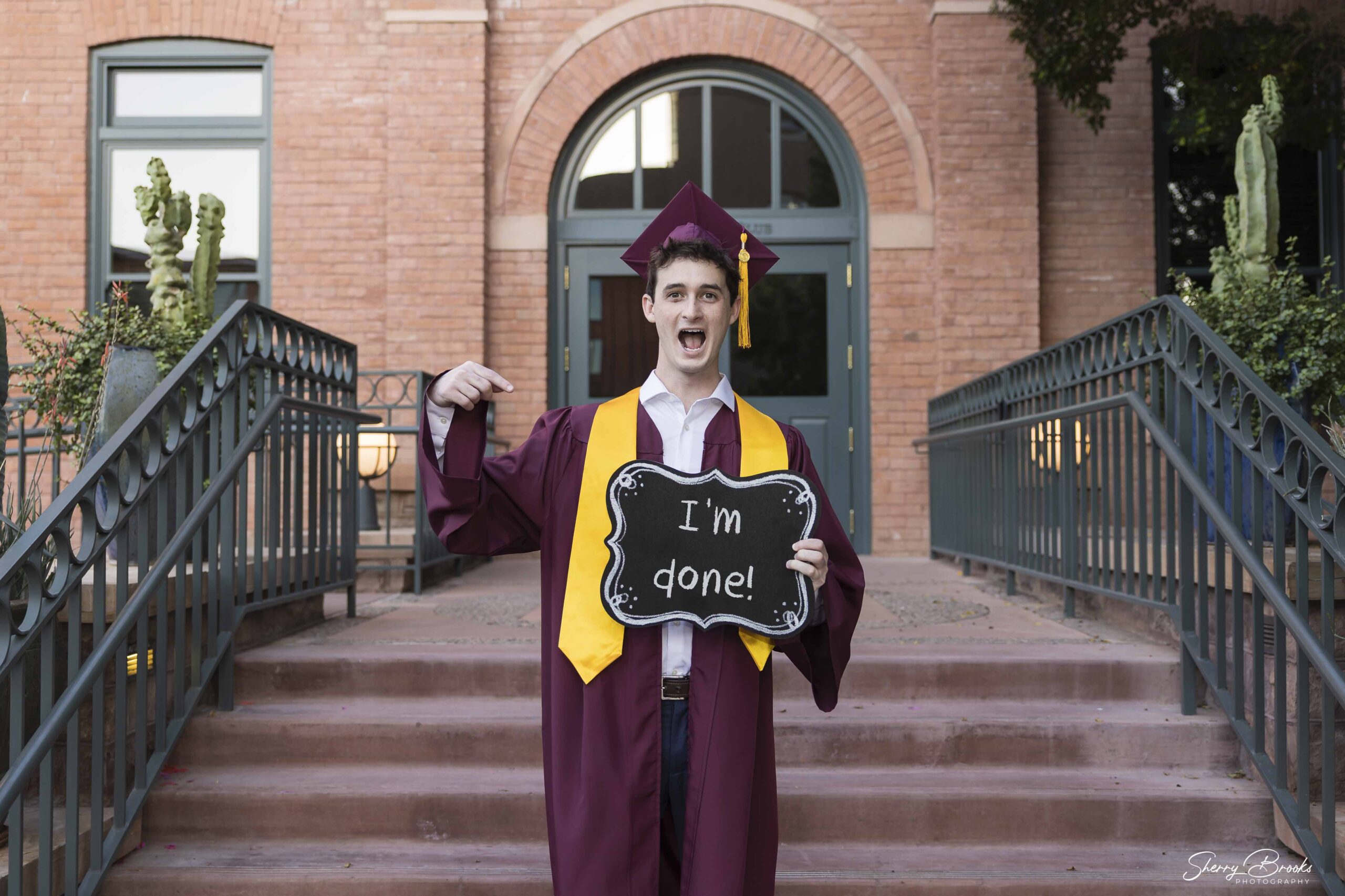 Next to Old Main is the University Club, a spot that I often use for ASU grad photos when my clients choose Old Main. The University Club is the second oldest building on campus and sits in the historic portion of campus. Its red brick exterior coordinates well with Old Main and provides a less hectic but still iconic backdrop for grad photos.